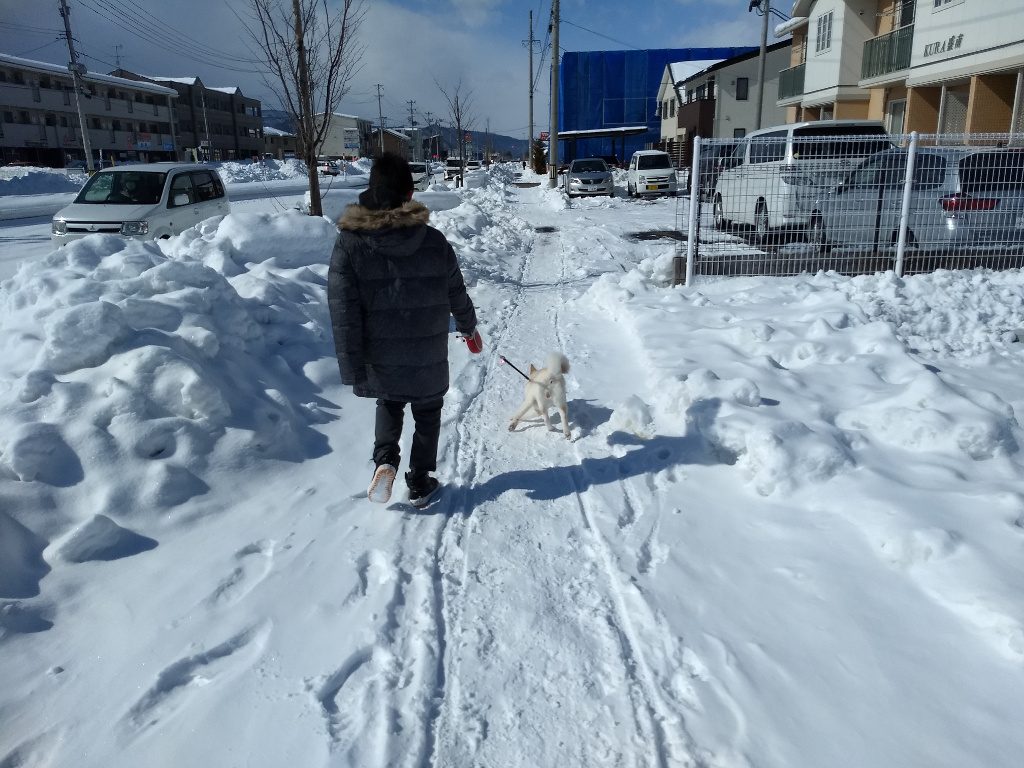 麦はどこまで体力があるのかなぁ・・・。お鼻に雪が付いても気にせず遊びます。