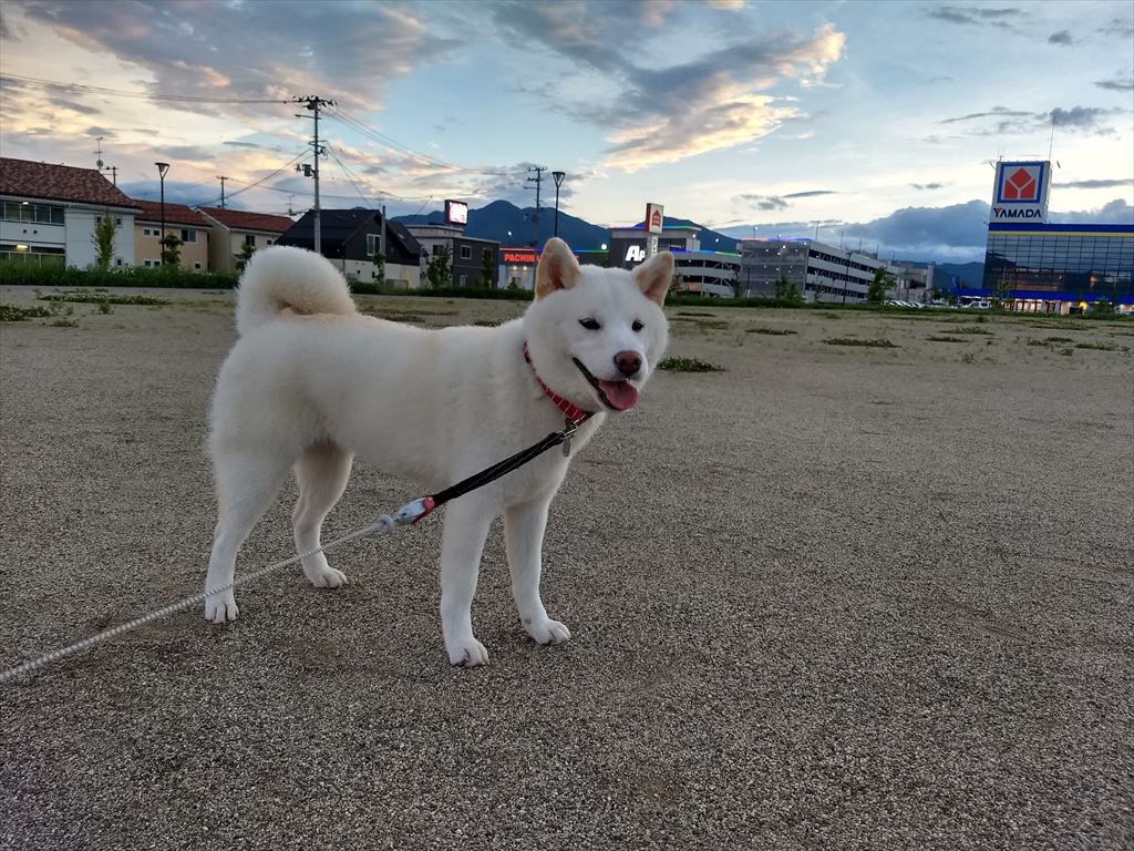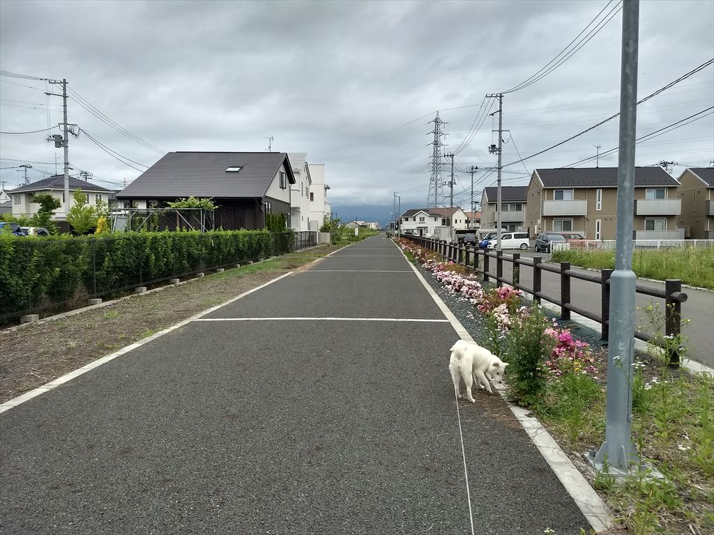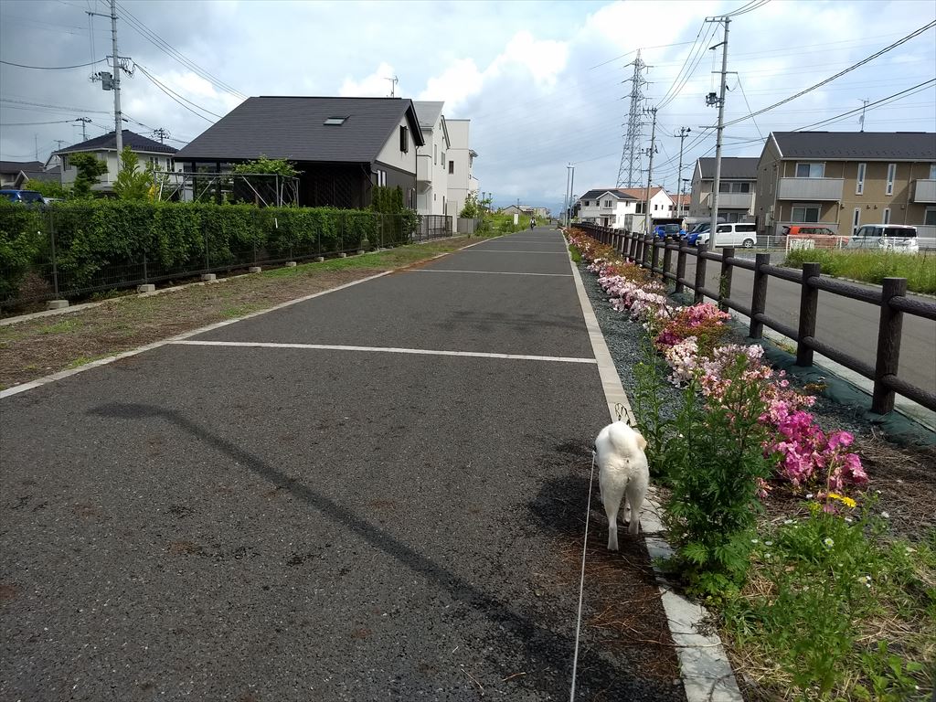 今日の午前中はドッグランへ行ったので、お散歩は夕方のみです。最近、公私ともに多忙だったので、自分が麦のお散歩へ行くのは久しぶりです。しかし夕方になっても暑くて、麦と一緒に走ると汗だくです。自分が運動不足なので、走らなきゃいけないんですけどね...