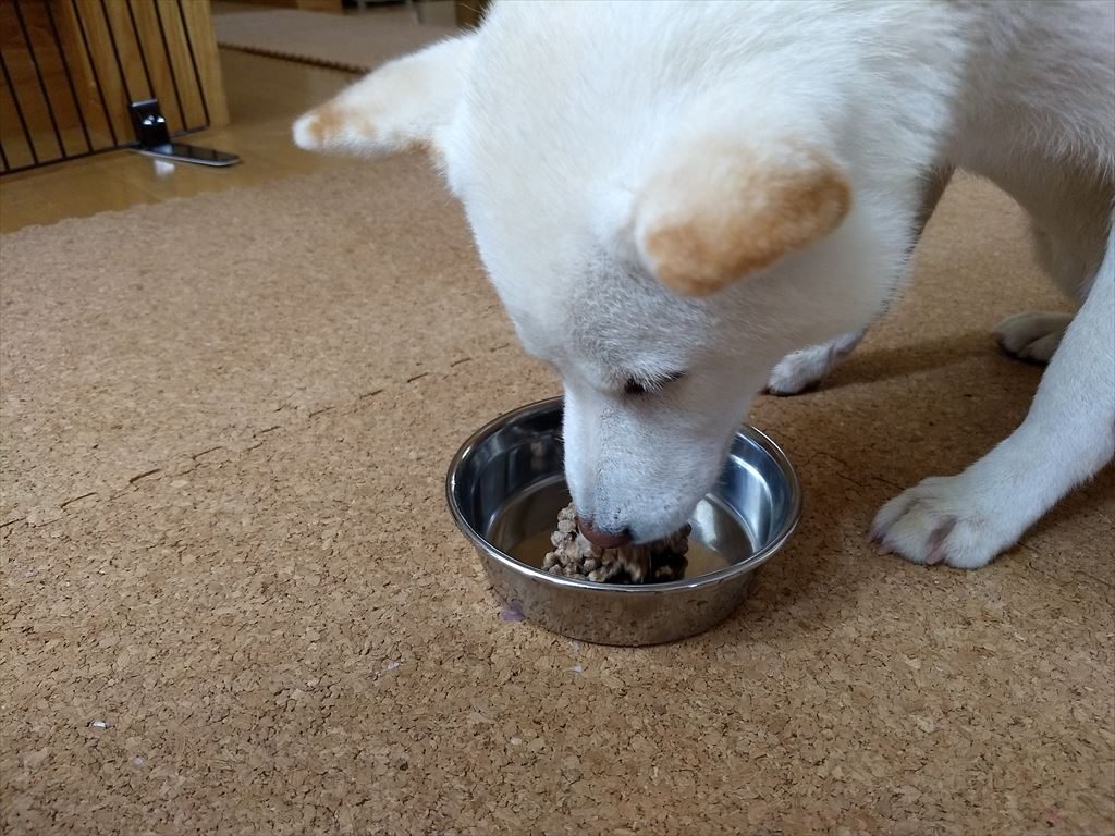 ちょうど家の冷蔵庫に納豆があったので、いつものカリカリのドッグフードを食べた後、麦にあげてみました。
