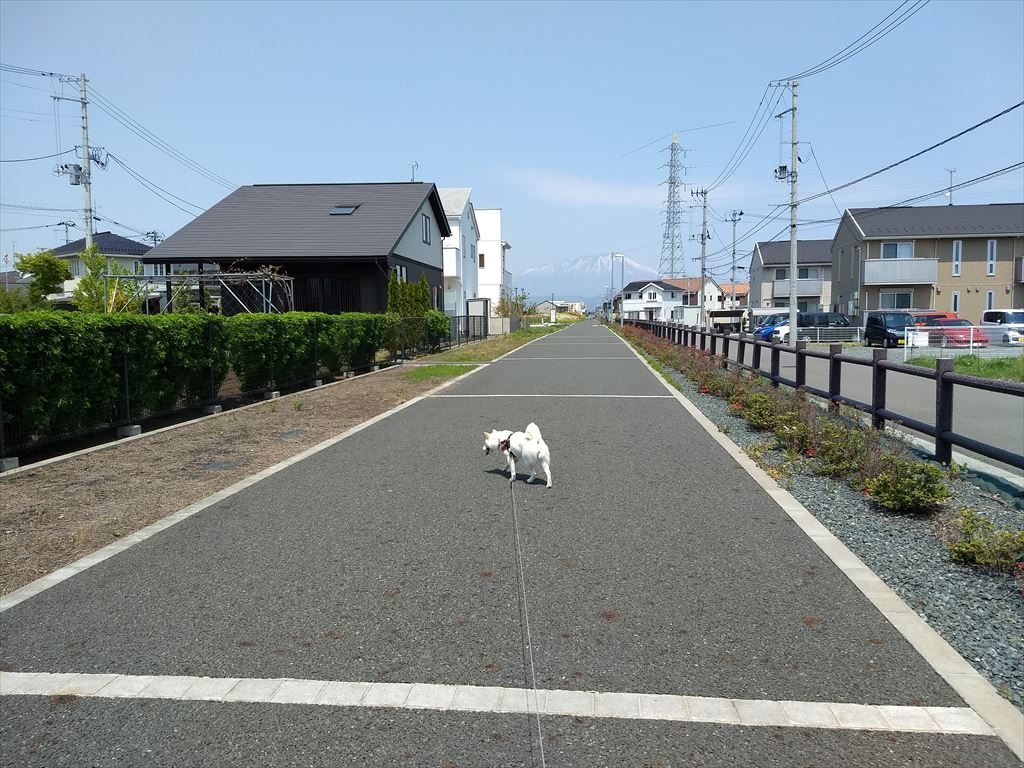 お散歩今日の盛岡は良い天気で、暖かいです。というか歩いていると暑いくらいですね。20度以上あります。麦のお散歩時間が10時と遅いというのもありますが・・・。
