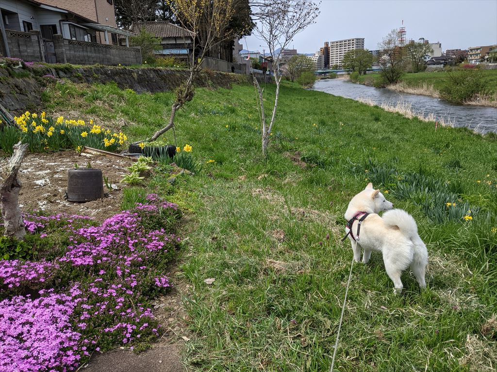 お散歩今日の盛岡も非常に暑いです。お散歩へ行くと、もう朝から汗だくです。