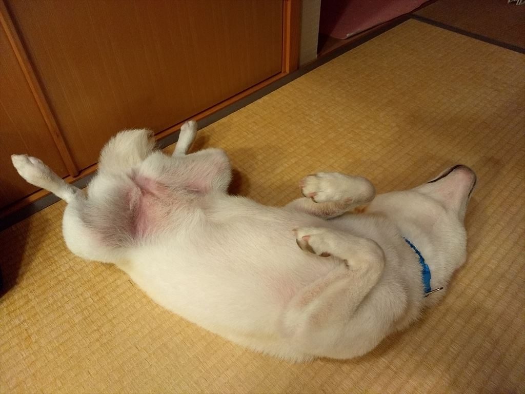 ある日、帰宅すると麦が仰向けで寝ていました。