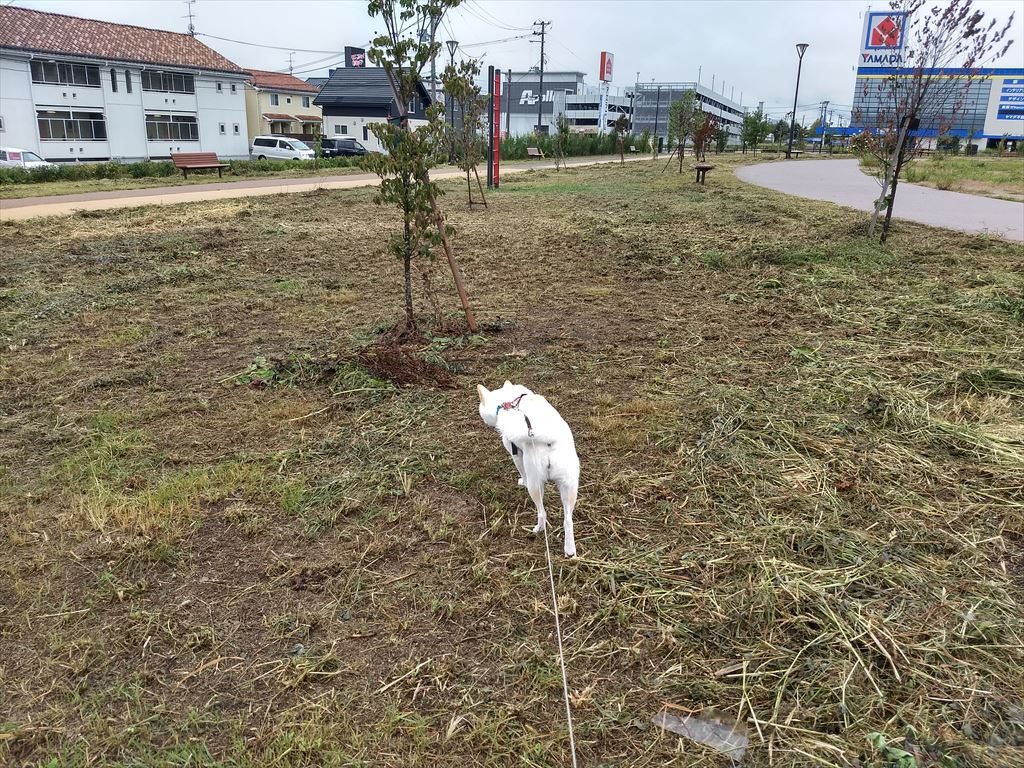 いつもの盛岡南地区公園は、3連休に草刈りが実施され、以前のぼーぼー具合から一変してすっきりしてました。麦を連れて歩くのも非常に楽です。