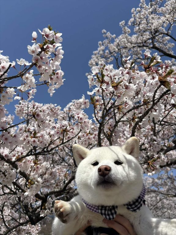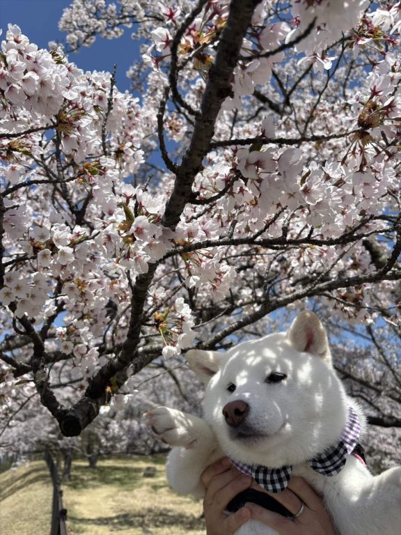 桜と麦。10kgを持ち上げて桜に近づけるのはちょっとしんどかったです・・・。