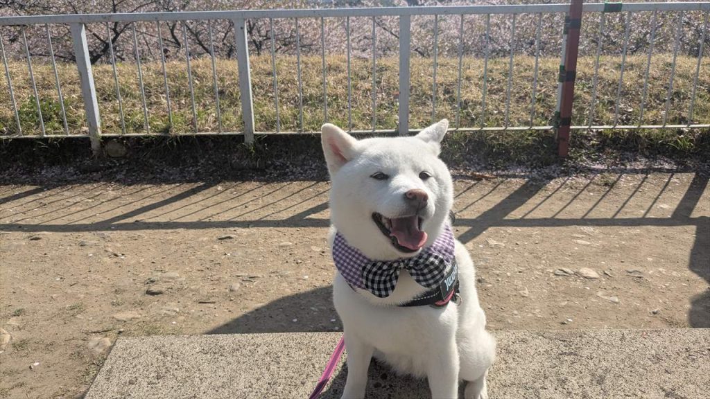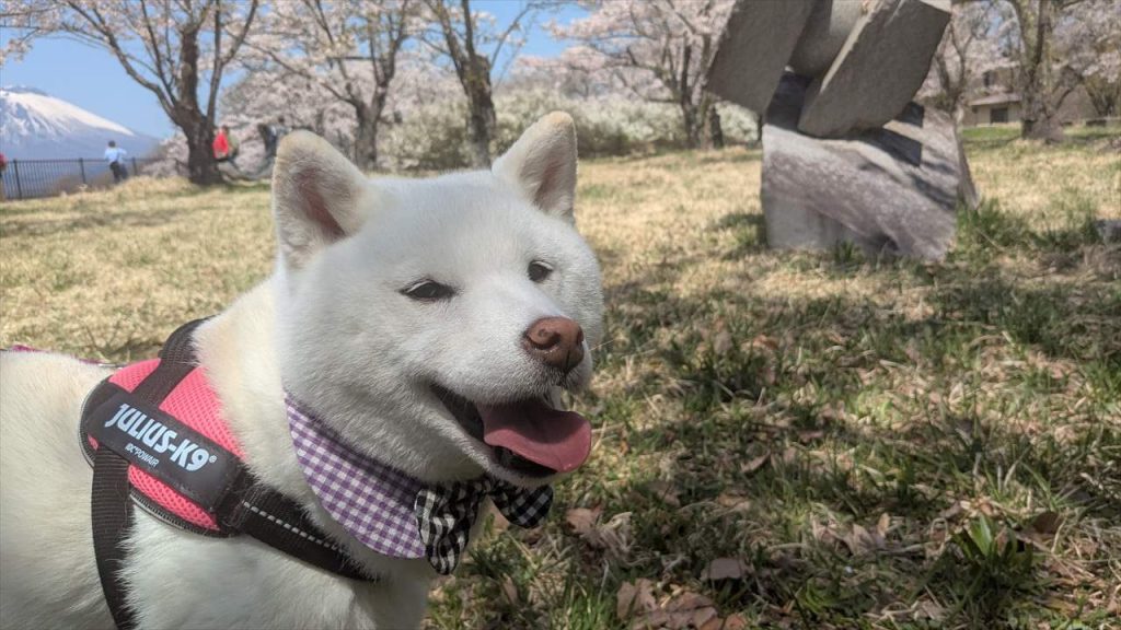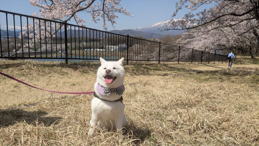 盛岡の桜が満開になり、お天気もよいということで麦を連れてお花見に行くことにしました。最初、高松の池に行ったのですが駐車場が満車で入れず・・・。しょうがないので比較的近くにある四十四田ダムへ行きました。四十四田ダムもさくらまつりを開催しており、結構人が多かったです。