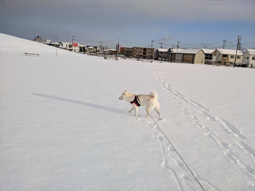 最近の盛岡は朝は氷点下で、日中でも最高気温が0度前後という厳しい寒さが続いていましたが、とうとう雪が積もりました。麦は普段はこたつに潜ってるくせに、雪の中では楽しそうなんですよね。いつもの盛岡南地区公園も雪に覆われました。雪上ですっきり。雪...