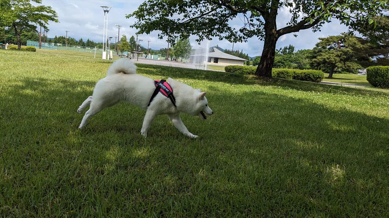 最近の盛岡はすっかり暑くなり、いよいよ半袖短パンでお散歩するようになりました。今朝は良いお天気なので、久しぶりに志波城古代公園へお散歩に行きました。木陰はさほど暑くなくて気持ち良いです。岩手山もよく見えました。木陰で一休み。暑い日の水分補給...